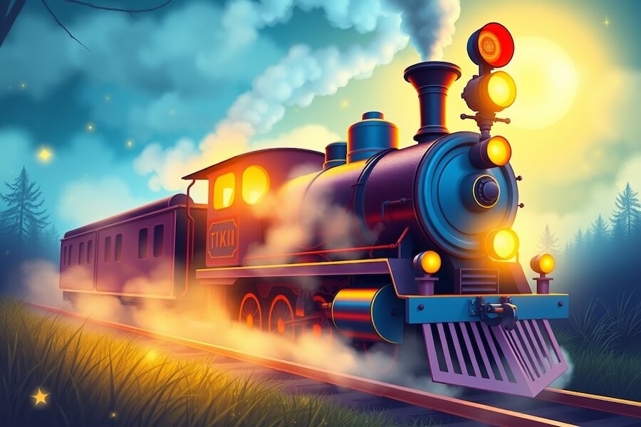 Luna była wyjątkową lokomotywą. Zamiast wozić pasażerów w ciągu dnia, jej zadaniem było podróżowanie nocą i zbieranie zagubionych snów. Jej błyszczący, granatowy korpus pokryty był migoczącymi gwiazdkami, a z komina buchały srebrzyste obłoczki pary.