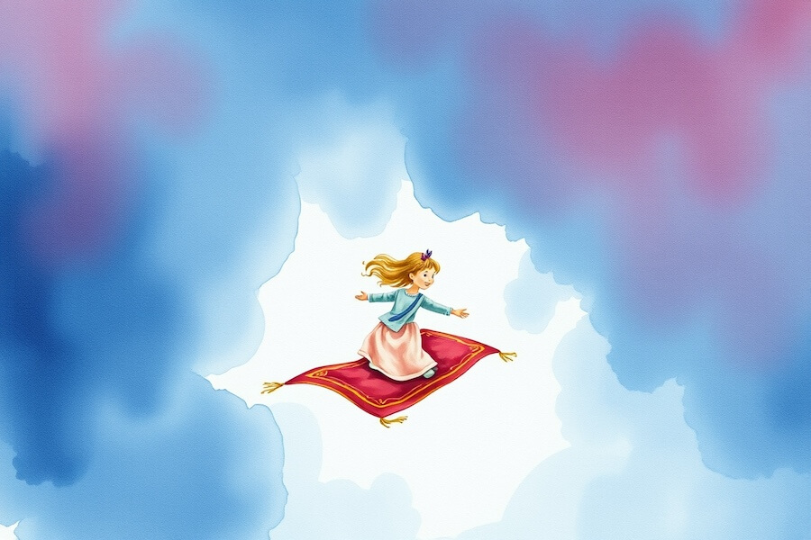 Dziewczynka poprosiła rodziców o kupno dywanu. Widząc jej entuzjazm, zgodzili się, nie wiedząc o magicznych właściwościach przedmiotu.