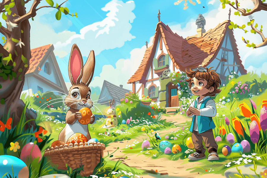 Dawno, dawno temu, w małej wiosce na skraju lasu, mieszkała wesoła gromadka dzieci. Wśród nich wyróżniał się mały Krzyś, który uwielbiał słuchać opowieści o dawnych czasach i tradycjach. Zbliżała się wiosna, a wraz z nią najważniejsze święto – Wielkanoc.